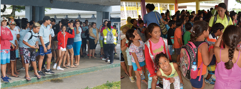 Les écoles maternelles, primaires, et le collège ont participé hier à cet exercice d'évacuation tsunami mis en place par la commune de Mahina. L'objectif était de voir le temps de réaction de chacun si un tel événement venait à se profiler à l'horizon. Mais pour le tāvana, c'était aussi et surtout le moment de mettre en pratique ce qui a été dit durant les nombreuses réunions avec les chefs d'établissements.