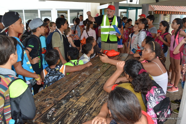 Tout était bien rôdé et chacun savait ce qu'il avait à faire et où il devait se rendre. Par exemple, les écoles primaires de Hitimahana et Fareroi ainsi que le collège se sont retrouvés au lycée professionnel d'Atima. Et c'est à pied que les petits bambins s'y sont rendus. Sur place, ils ont été accueillis par les équipes communales, du lycée et les élèves des filières SPVL (service de proximité et vie locale) et ASSP (accompagnement soin et service à la personne), "qui sont des filières qui permettent à nos élèves de se rendre utile", explique Vincent Baron, proviseur du lycée professionnel de Mahina.