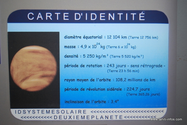 De nombreux panneaux, illustrés de photos, expliquent la création de l’univers, sa composition. On peut également découvrir les planètes du système solaire avec les spécificités de chacune des planètes qui le composent. Des explications sont bien évidemment apportées sur le transit de Vénus.