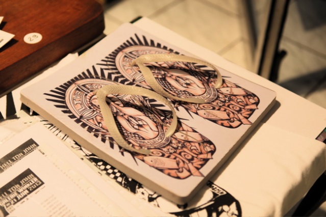 « Il y a des thèmes récurrents, j’aime bien les yeux, c’est par là que passe l’image et mon métier est façonné autour de l’image. Il y a souvent une touche polynésienne que ce soit en tatouage ou en motifs divers, des tikis. Ce sont des choses que j’affectionne et que je prends plaisir à faire. »