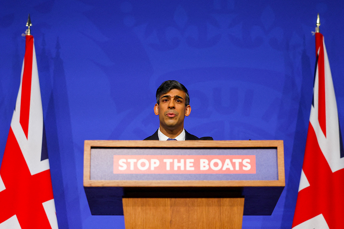 Le gouvernement conservateur britannique, à la peine dans les sondages à quelques mois des élections législatives, a fait de la lutte contre l'immigration illégale une priorité, et a promis de "stopper les bateaux" de migrants qui traversent clandestinement la Manche.