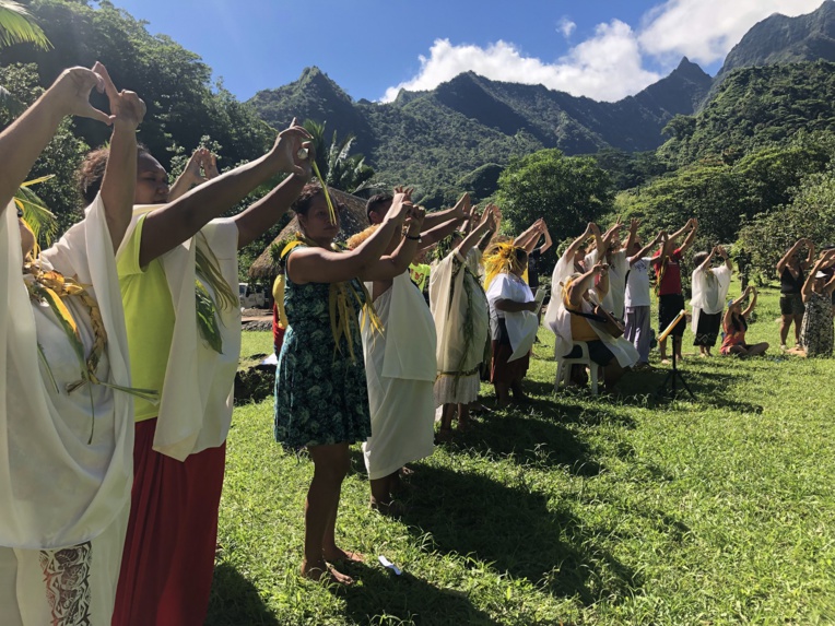 Une trentaine de personnes ont ainsi participé à une "cérémonie de communion" sur le site de Fare Hape dans la vallée de la Papenoo.