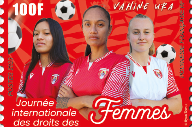 À l'occasion de la Journée internationale des droits des femmes, Fare Rata va émettre le 8 mars un timbre à l'honneur de la femme et du sport : il présente trois footballeuses des Vahine Ura, la sélection féminine tahitienne.