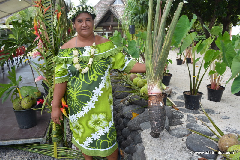 Teina Heia, agricultrice, présente sept variétés de 'uru et six variétés de taro