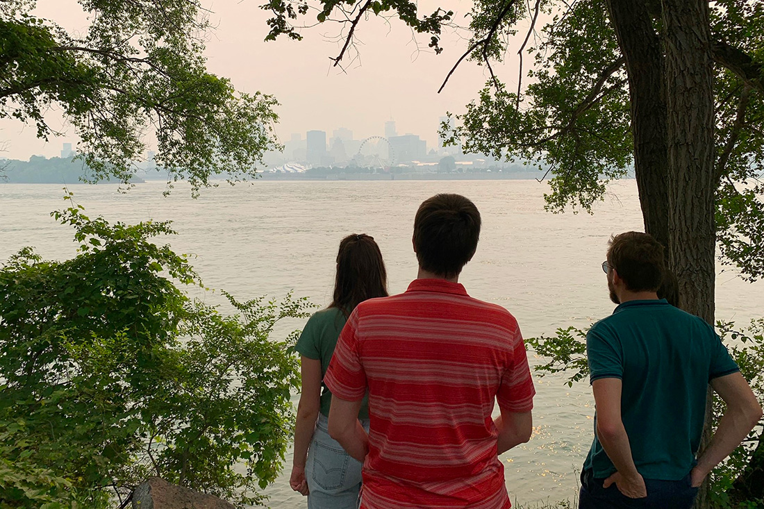 "C'est vraiment comme un brouillard, sauf que là c'est de la fumée à cause des feux de forêt. On a vraiment de la misère à respirer, ça pique un peu les yeux aussi", constate Fauve Lepage Vallée, 18 ans. Avec son amie, elle observe le centre-ville tout enfumé depuis le parc Jean-Drapeau, situé en face.