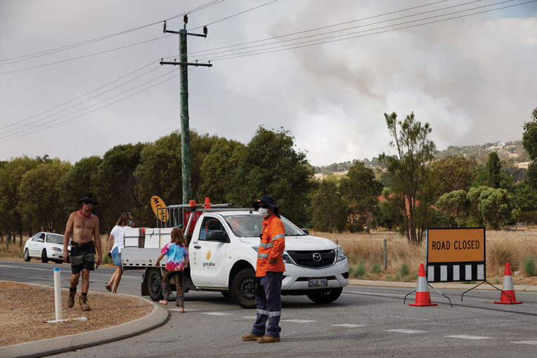 L'incendie a ravagé de grandes étendues de terre dans la zone des Collines de Perth et les flammes avancent vers les zones plus densément peuplées de la quatrième ville du pays.