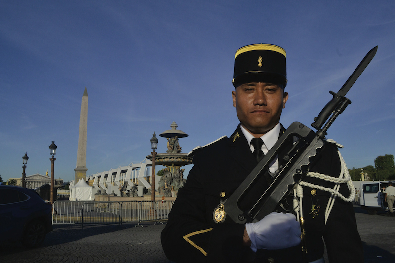 L'Arc de triomphe, la “plus belle avenue du monde”, la monumentale place de la Concorde, la Seine, l'obélisque et le jardin des Tuileries qu'on devine : le décor a de quoi impressionner. Il a ému aux larmes l'élève-gendarme Georges Olivier, qui le découvrait pour la première fois à l'occasion des répétitions générales du défilé militaire.