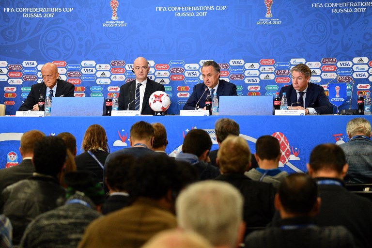 Saint-Pétersbourg, Russie | AFP | samedi 01/07/2017 - Le président de la Fifa Gianni Infantino a félicité samedi les deux superstars Cristiano Ronaldo et Lionel Messi, le premier pour ses nouveaux enfants et le second pour son mariage, événements survenus cette semaine.