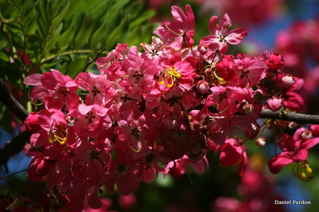 L’arbre à l’origine de cette floraison est le fruit d’une hybridation entre deux espèces de cassiers très généreux en termes de fleurs. Cet hybride a une floraison si spectaculaire qu’il a très vite été dispersé dans toute la ceinture tropicale pour orner parcs et jardins, et il fait l’unanimité partout. Lors de la floraison, ses branches semblent littéralement couvertes de manchons carmin, d’une beauté sans pareille.