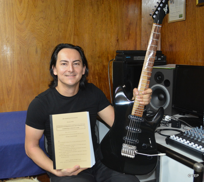 PAPEETE, le 27 septembre 2016 - Le musicien Florent Atem n'est pas juste un guitariste reconnu à l'international, c'est également un universitaire. Il a ainsi rédigé un mémoire pour l'Université d'Aix-Marseille, un travail qui va recevoir le prix de la meilleure thèse 2016 de cette université.