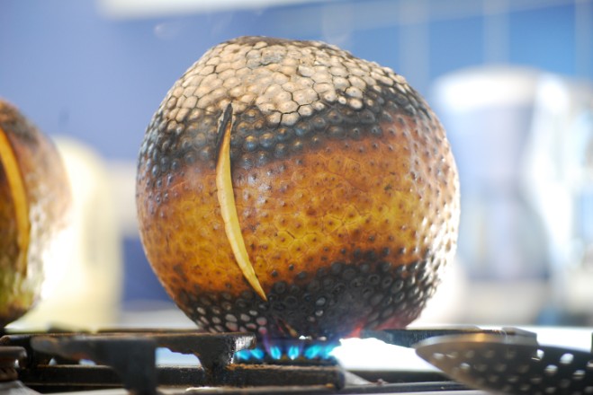 Le Durian ne se cueille pas mais se ramasse lorsqu’il tombe à maturité. Sa pulpe qui ressemble à une crème, est délicieuse mais a par contre une odeur très désagréable. Elle est habituellement consommée nature crue seule ou avec du yaourt ou de la glace. Elle se mange également cuite en porridge, en confiture et en bonbon et rentre dans la composition de certains gâteaux comme les gâteaux de lune. Cette pulpe est riche en potassium, en vitamines C, en protéines et… en graisse ! Le fruit du Durian est renommé pour ses vertus aphrodisiaques. Mais il faut attendre plus de dix ans après sa plantation pour que les premiers fruits se développent, ce qui fait dire qu’il faut prévoir de planter un Durian dans sa jeunesse pour en profiter pour ses vieux jours. Photo Chantal Alexandre Tahiti iti.