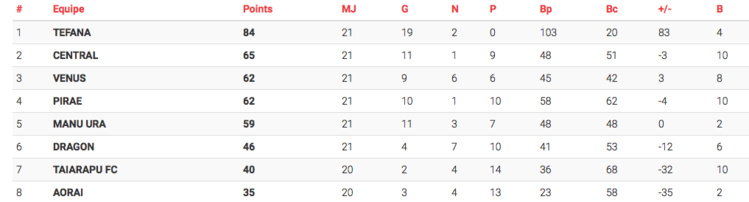 Au terme de cette ultime journée, les demies finales en vue du titre de champion de Tahiti, opposeront Tefana à Pirae et Central à Vénus. Ces rencontres auront lieu le 28 Mars en ouverture du Festival des îles au stade Pater à partir de 18H. La finale quant à elle se tiendra le 1er Avril à 20.30.