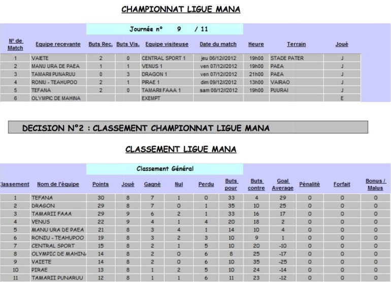Lors de cette première journée de ligue Mana, Tefana a reçu l’équipe Manu Ura de Paea qui est venue s’imposer 1 à 0. 4ème au général au terme du dernier championnat, Manu Ura démarre bien cette année en prenant l’ascendant sur Tefana, l’équipe qui a terminé 2ème en 2012 derrière le champion Dragon.