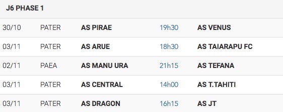 Dans les autres rencontres, Dragon et Vénus se sont neutralisées 1-1 grâce aux buts de Tamatoa Tetauira pour Dragon et Teaonui Tehau pour Vénus. Ce dernier s’est déjà placé en tête du classement des buteurs avec 13 réalisations devant Jess Horoi et Tamatoa Tetauira avec sept buts chacun. Dans le dernier match, duel entre équipes promues en Ligue 1 cette saison, l’équipe de Moorea Tiare Tahiti a battu Arue 5 à 2. SB / FTF