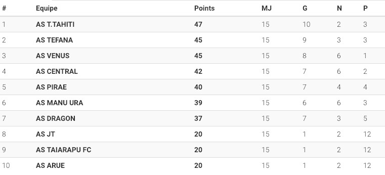 L’as Dragon s’est imposé 3-0 contre l’as JT, l’équipe de Titioro reste malgré tout à la septième place du classement à dix points du leader alors que 15 rencontres ont été effectuées sur les 27 que comporte le championnat. Avec sept victoires, trois nuls et cinq défaites, l’équipe semble avoir des difficultés à trouver ses marques cette année. Arue a pu s’imposer 3-1 contre Taiarapu, obtenant ainsi sa première victoire de la saison.