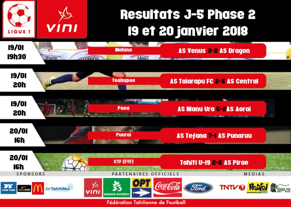 Sur les cinq matchs proposés par la fédération tahitienne de football lors de cette cinquième journée de la phase 2 du championnat de Ligue 1, le choc Vénus-Dragon était sans conteste le plus prometteur. Rappelons que Dragon et Vénus sont les deux clubs tahitiens qualifiés pour la Ligue de clubs champions OFC qui va débuter en février. Dragon avait battu Vénus 2-0 lors de la finale des « play off » en mai 2017, s’octroyant ainsi le titre de champion de Tahiti 2016-2017.