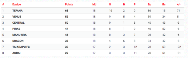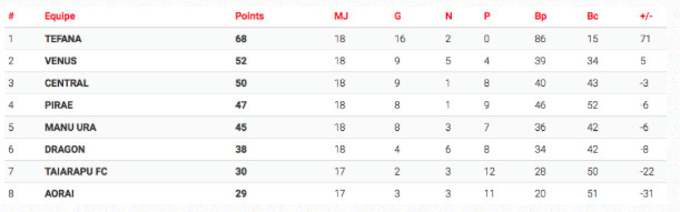Au classement, Vénus et Central sont au coude à coude, les deux équipes seront opposées ce vendredi pour un match au sommet. Le match de Tairapu FC contre Aorai a été reprogrammé au mardi 23 février à 19h.