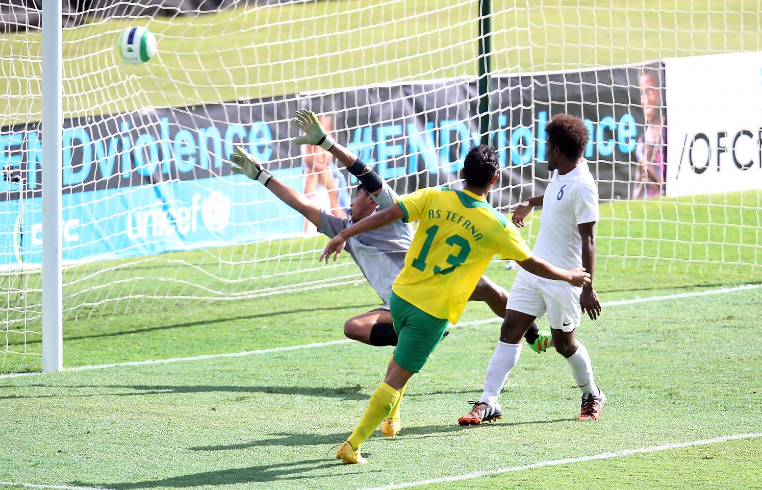 Le scénario vira au cauchemar lorsque Nicolas Vallar se fit exclure en fin de 1e mi-temps suite à un tacle aussi dangereux qu’inutile. En début de seconde période et alors qu’ils sont en infériorité numérique, Tefana réduit le score à 2-3 grâce à Taumihau Tiatia qui marque du plat du pied. L’espoir renait, d’autant plus que le capitaine Calédonien Loic Wakanumune se fait aussi exclure mais les Calédoniens sont forts, Tefana ne trouvera pas de solution et encaissera même un 4e but à la 86’, sur penalty.