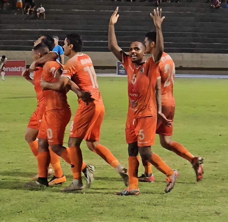 Desire N’Giamba qui a été désigné homme du match le transforme (1-0) et il remettra ça deux minutes plus tard sur un nouveau pénalty pour une nouvelle main illicite d’un Fidjien et pour permettre à Pirae de mener 2-1. La qualification pour la finale semble acquise pour les oranges mais à l’ultime minute des arrêts de jeu, Samu Kautoga marque de la tête sur un corner (2-2). Loin de douter, les oranges vont repartir de l’avant en prolongation et sur un centre à la 98e minute, Patrick Tepa cloue le gardien fidjien d’une sèche reprise (3-2).