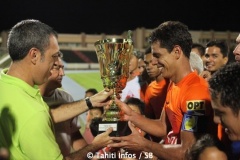 PIRAE le 23 mars 2014. Il aura fallu attendre la 10ème et dernière journée de la phase 2 du championnat de ligue 1 pour connaître le nouveau champion : grâce à sa victoire au stade Pater contre Tefana 5 buts à 1, l'as Pirae termine à la première place du championnat avec un total de 33 points contre 28 pour Tefana. Tefana avait pourtant remporté le match aller 4 à 2 qui s'était joué sur le terrain synthétique de Puurai à Faa'a.