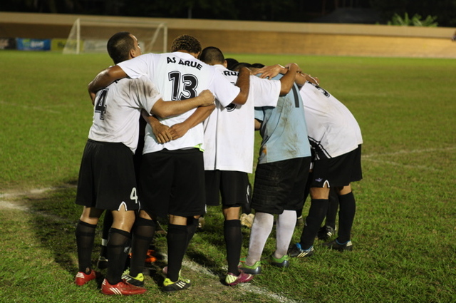 La finale Playdown a été également riche en émotion : Ouverture du score par les blancs de ARUE, puis égalisation de l’AS Tac qui prends ensuite l’avantage 2-1. Arue ne se laisse pas faire et réussit à remonter à 2-2 puis prend l’avantage 3-2. Malgré un expulsion les réduisant à 10, il tiennent le coup et remportent la coupe au terme d’un match mémorable.