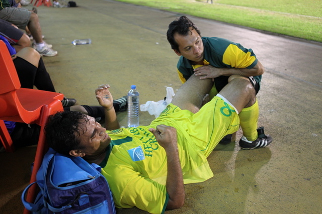« Il y a aussi le futsal en même temps, pour 500 fcp le public peut assister à tout, ça c’est une première. On peut toujours s’améliorer bien sûr, je reconnais qu’on s’y est pris trop tard pour les secouristes qui sont absents aujourd’hui et qui doivent être prévenus 15 jours avant, je l’ignorais. Une autre tribune en face serait bien aussi, car la tribune est quasi pleine. »