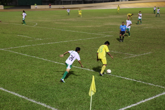 A une vingtaine de minutes du début de la deuxième mi-temps Alvin TEHAU le « gunner » ambidextre de Tefana, et ce en pleine course, place un tir croisé du pied gauche dans le petit filet et ouvre le score. Les jaunes de Tefana continuent de pousser et le gardien des blancs doit faire un arrêt décisif pur éviter l’aggravation du score.
