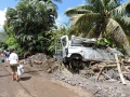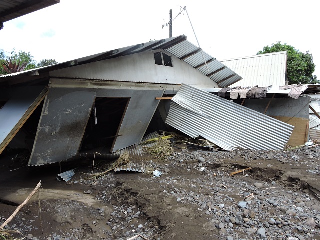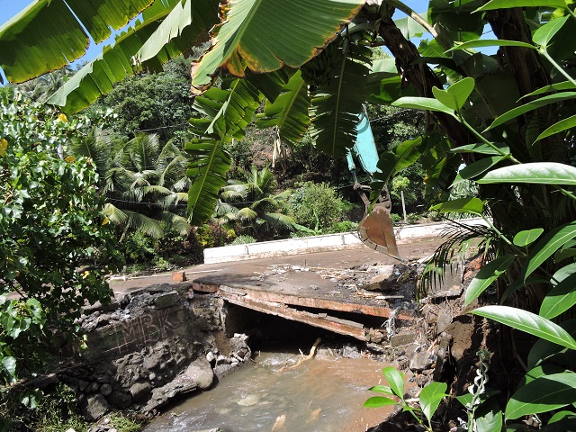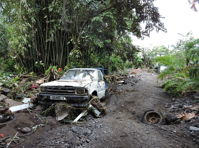 PAPEETE, le 13 décembre 2015. Les fortes pluies samedi ont provoqué de nombreux dégâts sur la côte Est. Des maisons ont été sérieusement endommagées voire détruites par les rivières qui se sont transformées en torrents de boue. Un homme de 65 ans a été retrouvé mort dans la vallée de la Papeno'o. Une trentaine d'hommes du Rimap-p interviendront ce lundi dans les vallées de Tiarei.