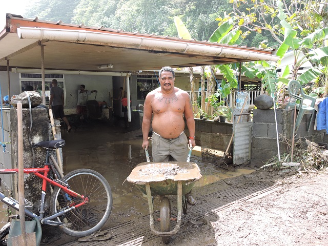 De nombreuses pelleteuses étaient à l'œuvre ce dimanche pour déblayer les rivières, les routes. Dans la vallée de Faaripo, à Papeno'o, la boue envahit encore de nombreuses maisons. A coups de brouettes, l'eau marron est évacuée. Une pelleteuse est à pied d'œuvre pour nettoyer la rivière. Samedi, la rivière a gonflé au point d'emporter de nombreuses voitures et des troncs d'arbres. Des maisons ont été complètement détruites. Des agents de l'OPH ont commencé à recenser dimanche matin les dégâts en passant dans les fare touchés. L'objectif est de pouvoir estimer rapidement les dégâts et de pouvoir intervenir grâce au compte d'aide aux victimes des calamités (CAVC).