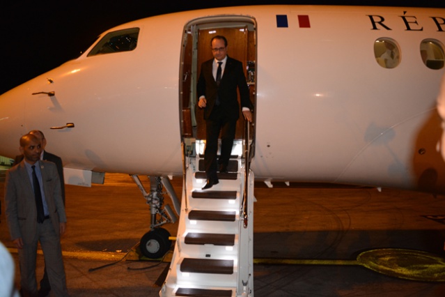François Hollande lors de son allocution à son arrivée dimanche soir à l'aéroport de Tahiti Faa'a.