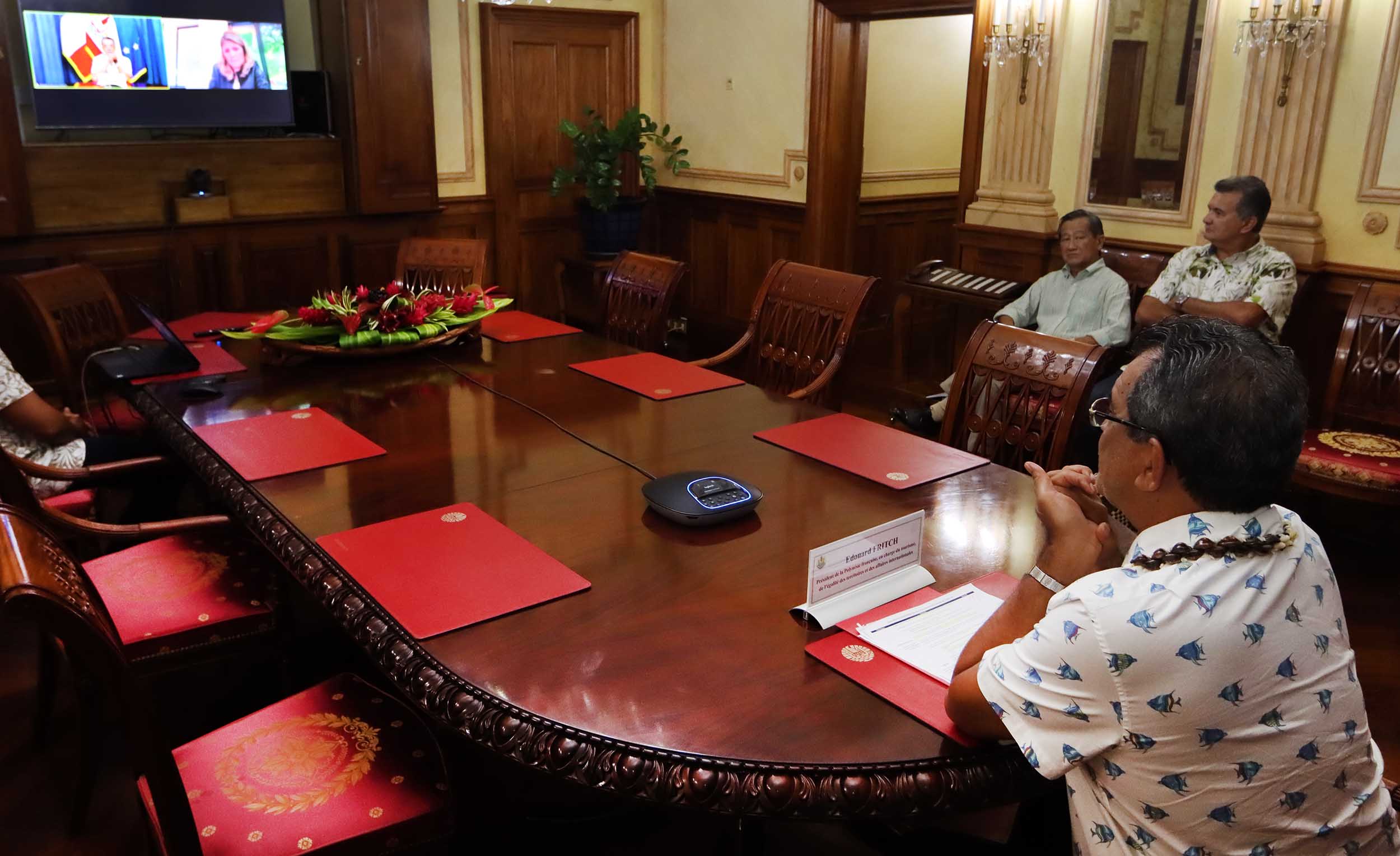 Tahiti, le 24 mai 2022 – Le président Édouard Fritch s’est entretenu mardi matin par visioconférence avec la nouvelle ministre des Outre-mer Yaël Braun-Pivet. L’occasion de lui exposer les dossiers qui représentent une priorité pour la collectivité.