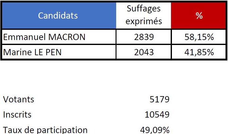 Tahiti, le 24 avril 2022 – À Pirae, où la participation a atteint le sommet très relatif de 49,1%, Édouard Fritch a réussi à maintenir son candidat Emmanuel Macron bien en tête avec 58,15% (2 839 voix) contre Marine Le Pen (2 043). Loin d'une victoire écrasante, un fief maîtrisé pour le président du Tapura huiraatira.