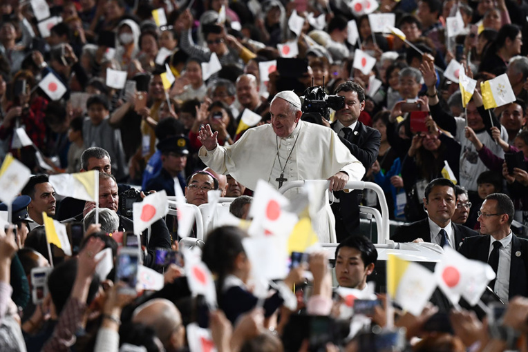 Dans le Tokyo Dome, stade de baseball couvert, François a été accueilli avec des cris de joie de plus de 50.000 fidèles. "Beaucoup de personnes se sentent perdues et inquiètes, sont accablées par trop d’exigences", a-t-il commenté dans une homélie traduite en japonais sur écrans géants.