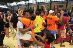 PIRAE, le 5 avril 2014. Le festival des îles s'est achevé en apothéose avec une finale de futsal qui a déchaîné le public de Fautaua. La salle était pleine à craquer et l'ambiance digne de la coupe du monde de beachsoccer. Chez les femmes, on a pu assister à un affrontement entre deux équipes de Faa'a, Tefana et Oremu. L'équipe de Tefana était de niveau supérieur et le match s'est soldé par un 5 à 0 cinglant pour Tefana.