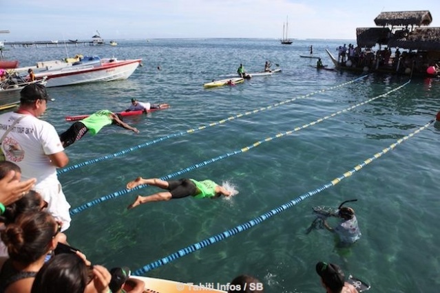 Pour certains, il manquait un peu de place et de parking mais le cadre proposé a offert une bonne journée de convivialité dans un cadre inhabituel. Le restaurant était ouvert et DJ Vesto puis Toa Ura ont su animer l’événement qui a proposé du stand up paddle, du ‘prone’, de la natation, du sauvetage et pour finir une épreuve ‘combo’, une épreuve pluridisciplinaire.