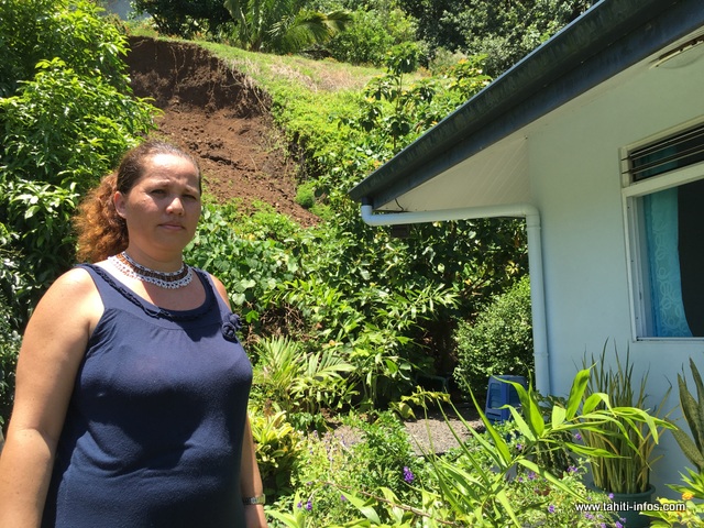 "Ça fait deux mois que cette situation dure, l’éboulement s’est produit pendant les pluies diluviennes du 10 novembre. À Mahaena, il y a eu des maisons qui ont été inondées. Le lendemain, il y a eu cet éboulement, quand il s’est produit, nous étions dans la maison. Nous avions eu une grosse frayeur, heureusement qu’il y a le manguier et l’avocatier qui ont pu retenir la terre parce que je suis sûre qu’on serait enseveli aujourd’hui. On est abonné dans plusieurs services et on nous dit on vous comprend mais il faut savoir que vous êtes dans une propriété privée, etc. Mais voilà, ce qu’on veut, c’est qu’on nous autorise à retirer cette terre et qu’on fasse le nécessaire pour sécuriser ce talus. Nous sommes 4 dans cette maison, nous y sommes tous les jours et depuis deux mois, nous n’avons pas le sommeil long, on n’est pas tranquille. Le maire nous soutient mais bon il y a des conditions qui nous font barrière."