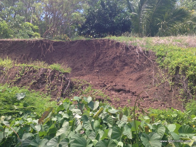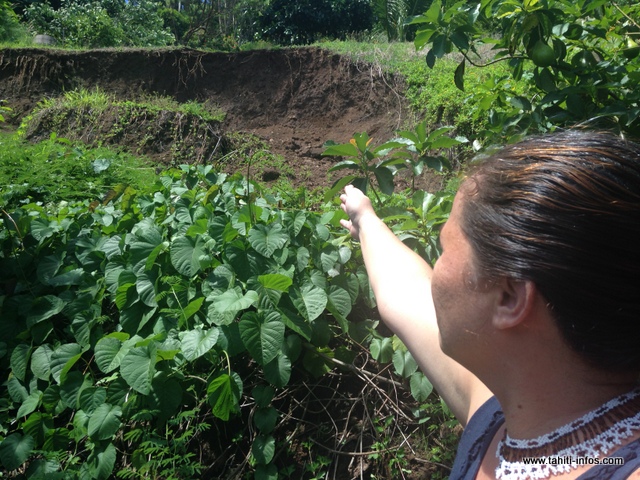 TIAREI, le 13/01/2016 - Magalie Linaud et sa famille n’en peuvent plus, depuis le glissement du talus jouxtant leur maison en novembre dernier, 100 m3 de terre se retrouvent à l’arrière de leur domicile. Si les pluies continuent, une partie du talus pourrait encore se détacher. Depuis deux mois, ils vivent dans l’inquiétude et ils ne peuvent rien faire sans l’accord de leurs voisins du dessus.
