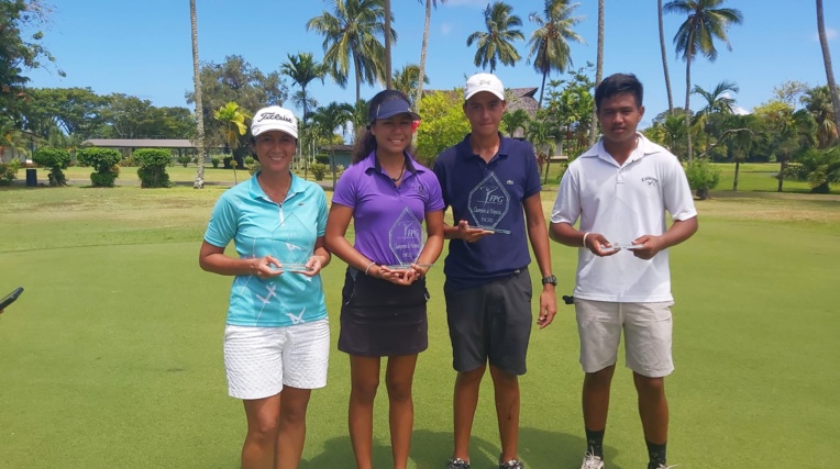 Tahiti, le 22 mars 2021 - Les finales du championnat de Polynésie de golf, format brut, se sont jouées dimanche sur les greens de Atiamaono. Chez les dames, Rarau Taerea-Pani, 17 ans, a eu raison de Laina Faraire. Et du côté des hommes, Ari de Maeyer, 16 ans, a conservé son titre acquis l'an passé.