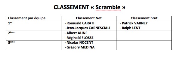 A l’issue d’une journée marquée par la convivialité et par le fair-play des joueurs, la remise des coupes s’est déroulée au Club House à 15h30 et a récompensé les 3 meilleures équipes du classement en net et la meilleure équipe en brut.