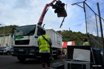 Alors ça n'arrête pas. On a réquisitionné trois camions de Tahiti Access, Tahiti Sign et de la mairie, et ils ont dû faire une quinzaine de voyages chacun depuis ce matin dans chacune des onze ou douze servitudes de Tipaerui.