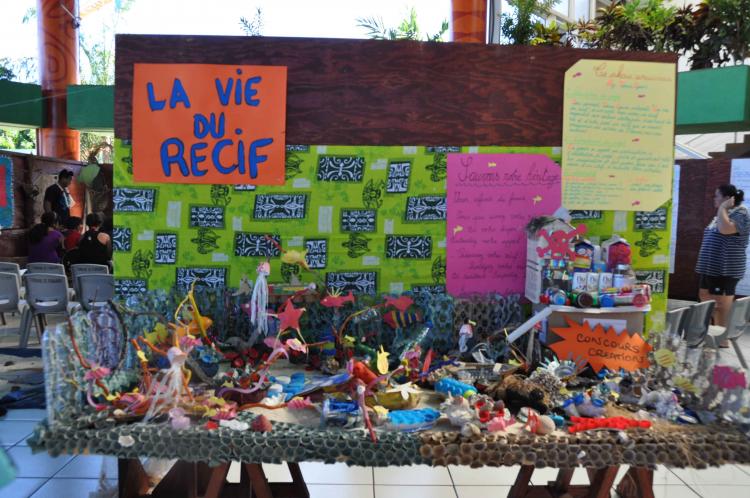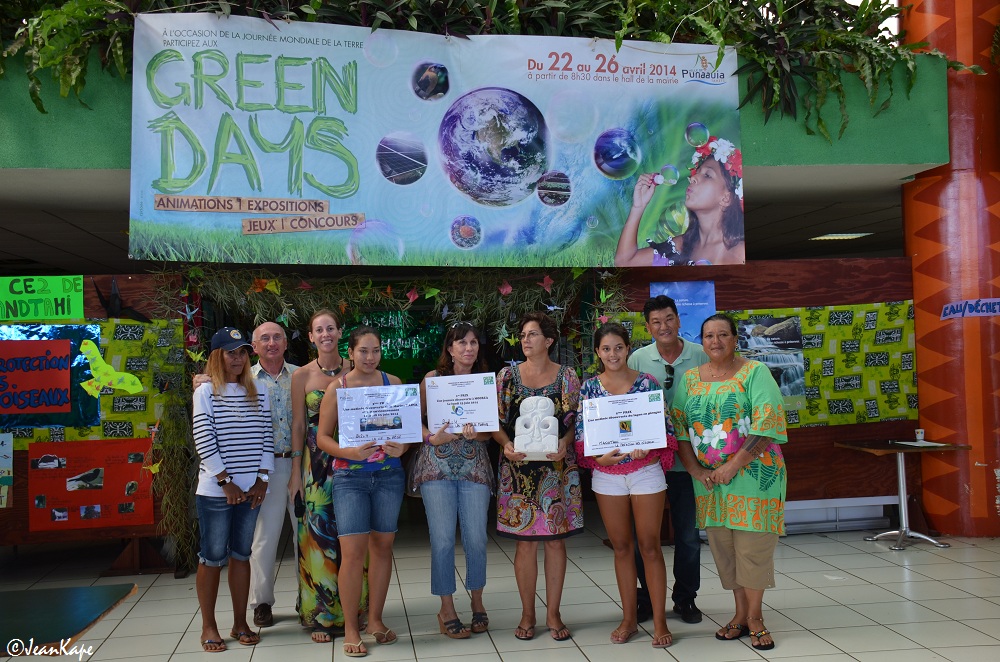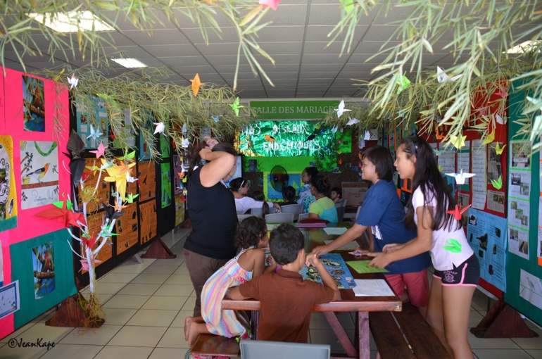 Si deux stands étaient créés par les services municipaux, les 9 autres étaient conçus et tenus par les enfants, qui ont été aidés par leurs professeurs et les associations écologiques partenaires. Ils participaient aussi à un concours, qui a été remporté par une classe de CM1 de l’école 2+2=4 avec son stand sur les mammifères marins, en partenariat avec l’association Tamarii Pointe des Pêcheurs. En deuxième position venaient les élèves de 3 classes de CE2 de l’école Manotahi, en partenariat avec la SOP Manu, qui ont réalisé un stand sur la protection des oiseaux. Enfin les troisièmes étaient les élèves de deux classes de CM1 et CM2 de l’école 2+2=4 avec leur stand sur la vie du récif. Ils ont remporté des sorties vertes.