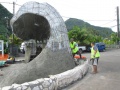 PAPEETE, le 28 juillet 2015 - Il est celui par qui la vague est née. Gregorio Grand-Midi a pensé et conçu le tube en ciment qui enroule la nouvelle planche en bois, PK 0 à Teahupoo. Pour l'artiste, voyageur et surfeur, c'est un peu un rêve qui se réalise.