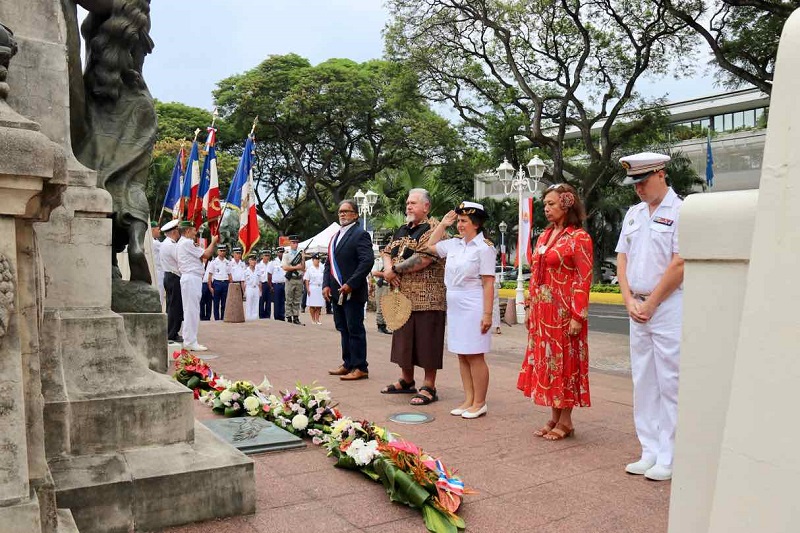 Cela fait aujourd'hui vingt ans que chaque année, le 5 décembre, la République rend hommage aux plus de 23 000 morts pour la France pendant la guerre d'Algérie. Une cérémonie s'est ainsi déroulée ce mardi matin à Papeete. Le président du Pays Moetai Brotherson, Emilia Chavez, la directrice de cabinet du haut-commissaire, Nicole Sanquer qui représentait le président de l'assemblée Antony Géros, mais aussi Marcelino Teata représentant le tavana de Papeete Michel Buillard et enfin Tony Delaleau au titre du COMSUP ont ainsi déposé des gerbes au monument aux morts de l'avenue Pouvanaa a Oopa.