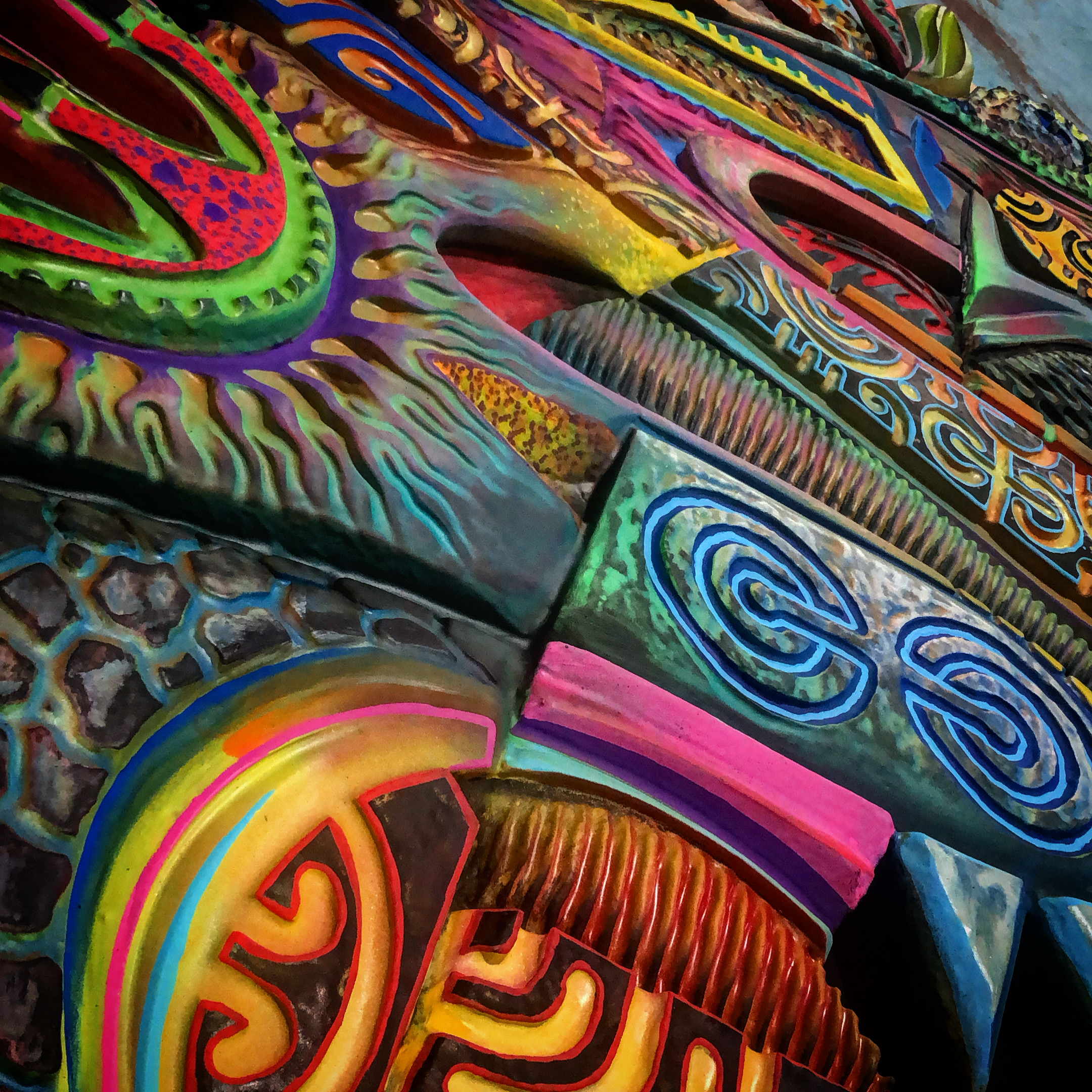 C’est au moment de l’adolescence que la personnalité de HTJ a commencé à se révéler. Il a fait partie des premiers graffeurs tahitiens à la fin des années 90. Ses sources d’inspiration étaient déjà variées : la culture polynésienne en premier lieu, l’imagerie surfwear, la musique rock’nroll, punk, métal et le graffiti. Elles ne l’ont pas quitté.