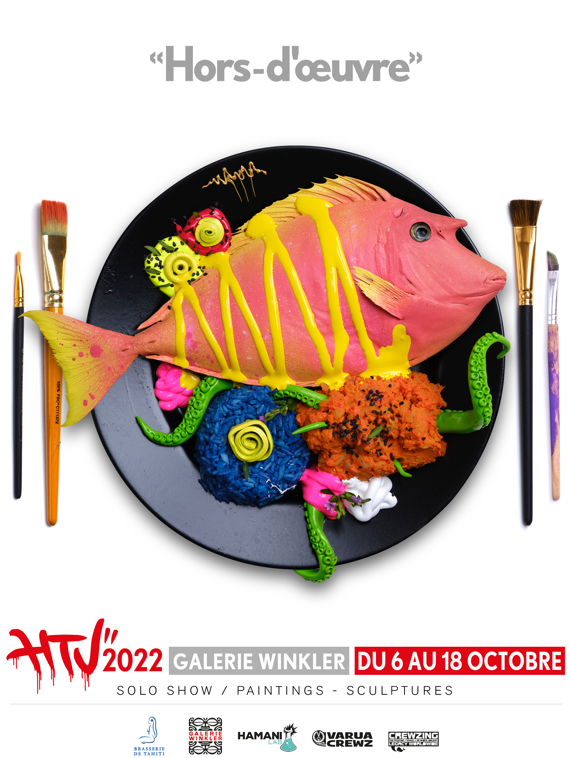 TAHITI, le 4 octobre 2022 - L’artiste HTJ va exposer ses nouvelles créations à la galerie Winkler à partir de jeudi. Il propose une série de toiles tout droit sorties des cuisines de son atelier. D’où le titre de l’événement : hors-d’œuvre.