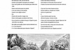 Un savoureux dictionnaire français-tahitien est également intégré. Il traduit un certain nombre de phrase française en tahitien à utiliser en différentes situations : lors d’une rencontre avec un Tahitien dans la vallée, en cas d’accident, à l’arrivée dans un village ou lors d’un voyage autour de l’île. Ce qui participe à la description de la vie d’alors, des problématiques de l’époque : “Fais un grand feu, nous allons rester ici jusqu’à demain”, “Nous avons un lit européen à te donner et une moustiquaire, tu ne seras pas piqué par les moustiques”.