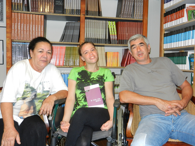 PAPEETE, le 26 octobre 2015. Nathalie Salmon-Hudry est lourdement handicapée depuis sa naissance. L'auteur du livre "Je suis née morte" paru en septembre 2012 chez l'éditeur Au Vent des Îles, se bat néanmoins avec enthousiasme pour vivre le plus normalement possible en dépit des préjugés et de ses difficultés. Elle explique aujourd'hui les difficultés qu'elle rencontre pour une véritable insertion professionnelle