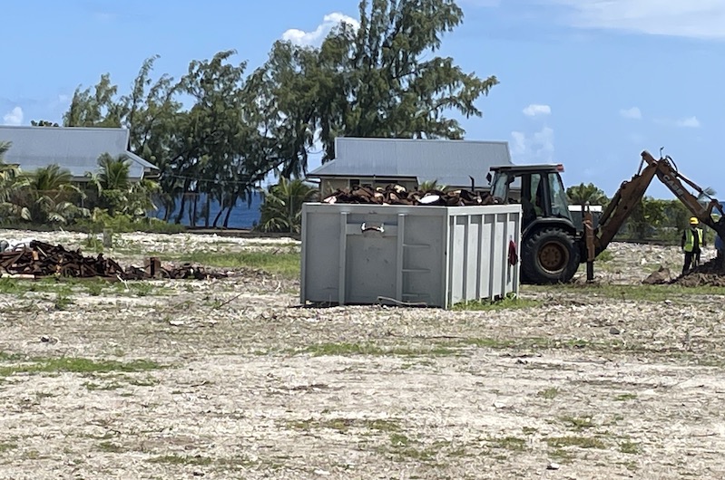 Hao, le 7 mars 2022 - Le chantier de dépollution des terres annoncé par l'État en fin d'année a débuté à Hao. Il s'agit de dépolluer les sols des hydrocarbures et métaux lourds mais aussi de divers déchets et ferrailles encore présents sur les anciens sites des essais nucléaires. L'opération est sous-traitée par une jeune entreprise de l'atoll.