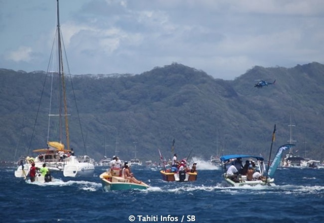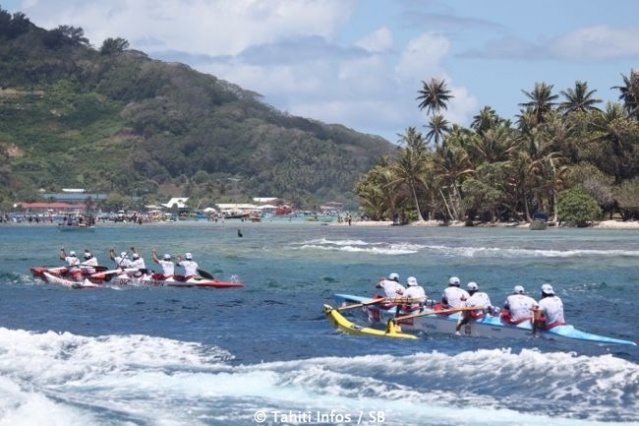 La 2ème étape de 26 km se déroule à l'intérieur du lagon qui englobe Raiatea et Taha'a, une épreuve toute en puissance pendant laquelle les rameurs ne pourront compter que sur les vagues générées par les bateaux.