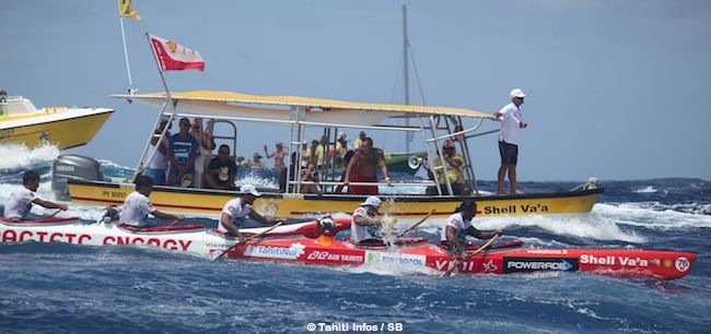 HUAHINE, le 3 novembre 2014. Shell Va’a est le club qui a le plus gros palmarès, au niveau local comme international. On le jalouse, on l’admire et il ne laisse personne indifférent. En 2013, il gagnait presque toutes les courses locales, gagnait Moloka’i mais terminait 5ème à Hawaiki Nui. L’année 2014 est mitigée avec de belles victoires comme lors du Fa’ati Moorea mais aussi avec cette 2ème place à Moloka’i derrière Edt Va’a qui met fin à une série de 8 victoires à Hawai’i.